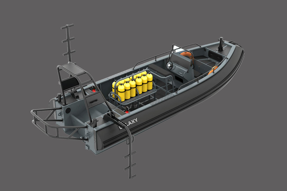 Galaxy Trident T7 is a mission-ready, aluminium-hulled RIB workboat engineered for operators who demand maximum efficiency, endurance, and adaptability. Designed for rapid deployment across rescue, enforcement, commercial, and defence environments, the T7 features a removable D-collar system that expands deck space and enables straightforward, in-field servicing. A solid foam collar option offers enhanced resilience in high-impact or abrasive conditions. Its soft-riding deep-vee hull, combined with shock mitigation seating, ensures crew protection in dynamic sea states. Built from circular and fully recyclable marine-grade aluminium and equipped with a modular deck system, the Trident T7 delivers a reliable, versatile platform for multi-mission operations in demanding environments.